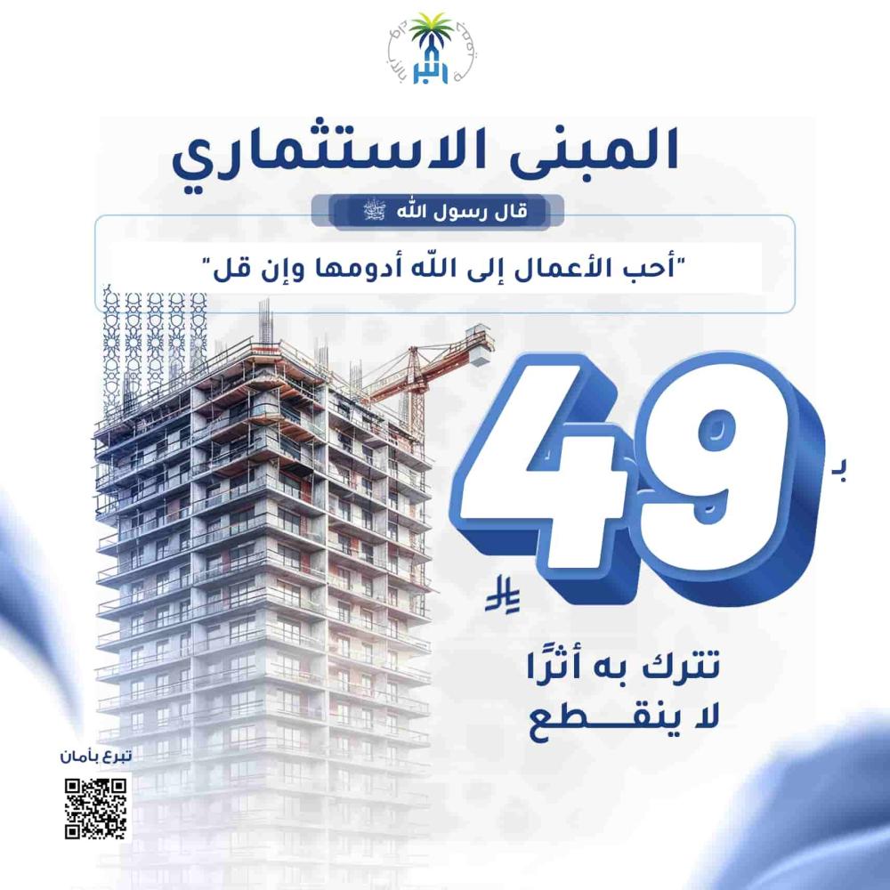 📌 صدقتك في المبنى الاستثماري ليست عابرة، بل هي صدقة جارية تنفعك في حياتك وبعد مماتك.
